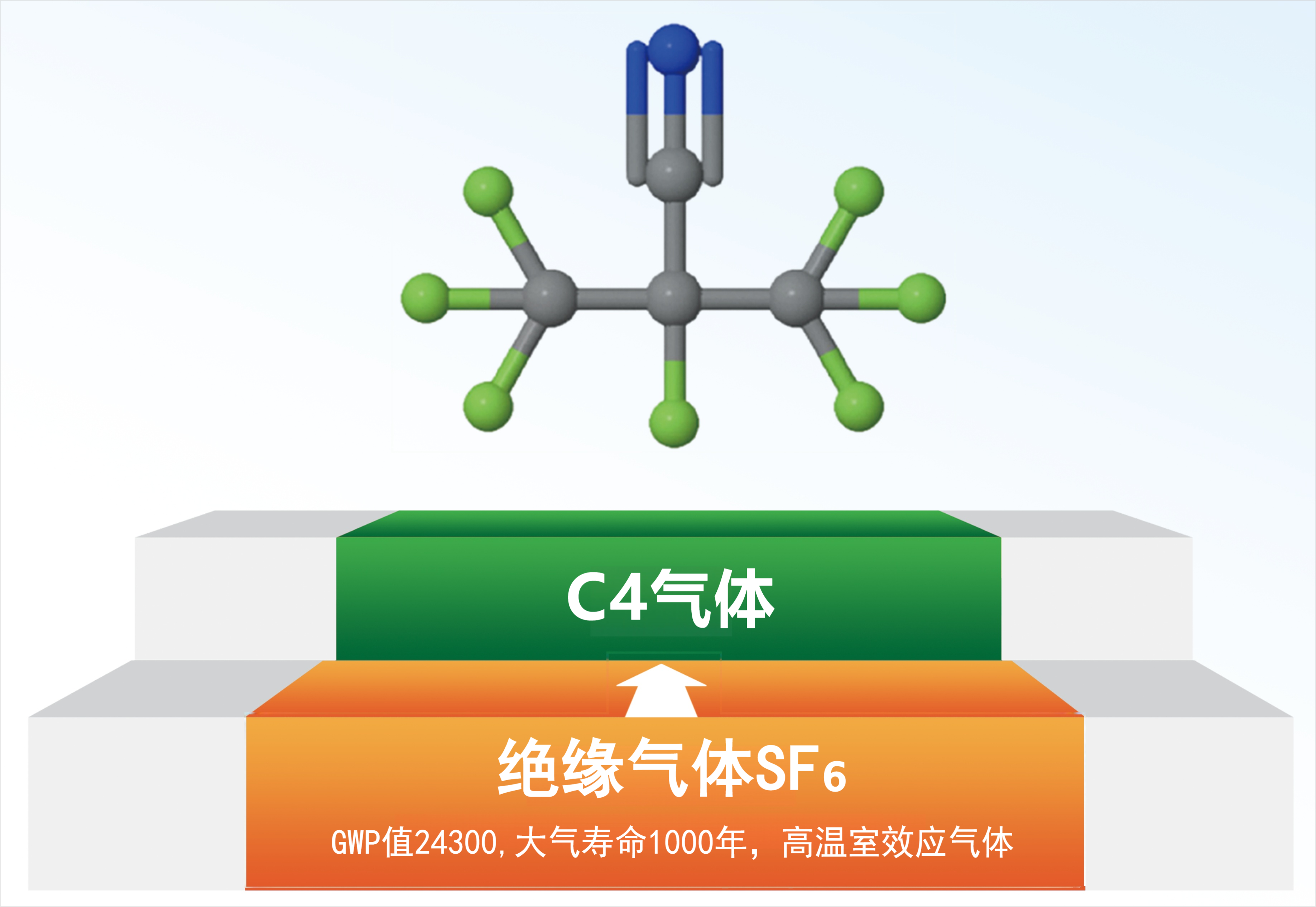 パーフルオロイソブチロニトリルは絶縁性能と消弧性能を有する絶縁ガスである。主に中?高電圧送電システムや配電設(shè)備の絶縁?保護(hù)に用いられている。従來の絶縁ガスの六フッ化硫黃(SF?)より、地球溫暖化係數(shù)(GWP)が著しく低く、環(huán)境への影響を大幅に低減するため、SF?の理想的な代替品である。